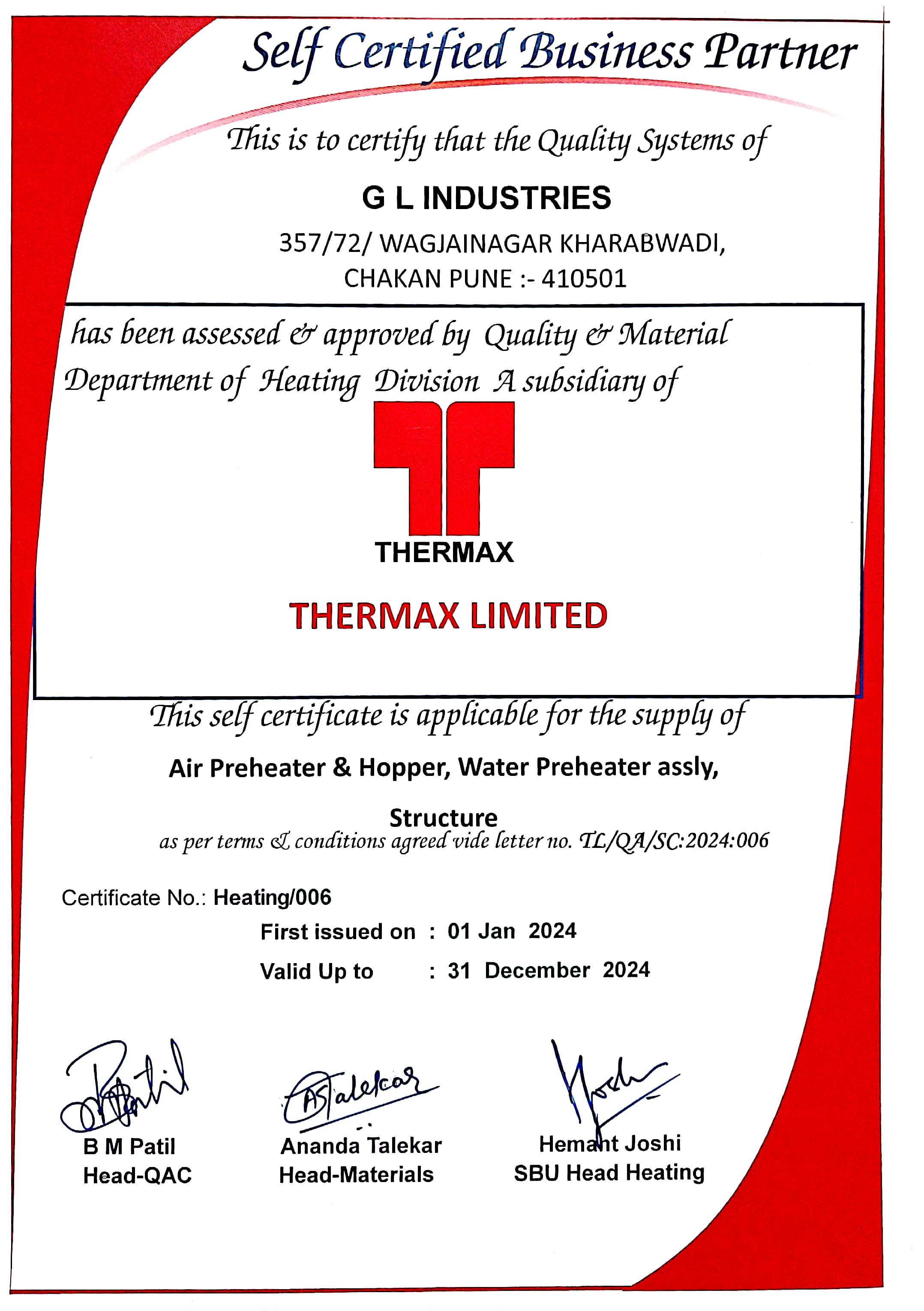 We hereby derive great pleasure to introduce M/s. G. L. Industries - as an ISO 9001:2015 certified company. M/s. G. L. Industries is a partnership firm engaged in the manufacturing of heavy industrial products ; established by team of professionals.